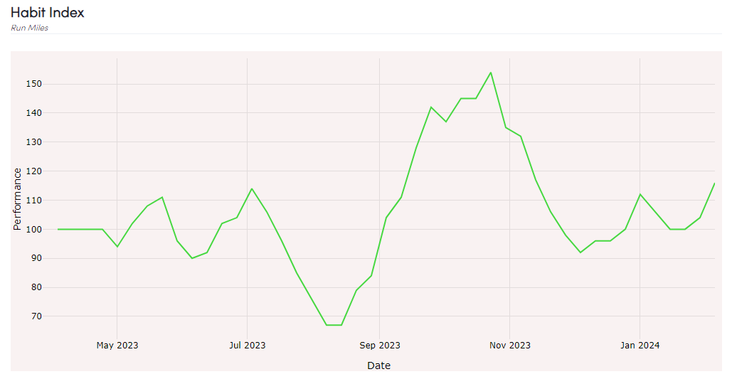 A neutral measure of how well you are doing on your habit: normalized to 100 which will open up a lot of options for combining habits and giving broader performance measures.
