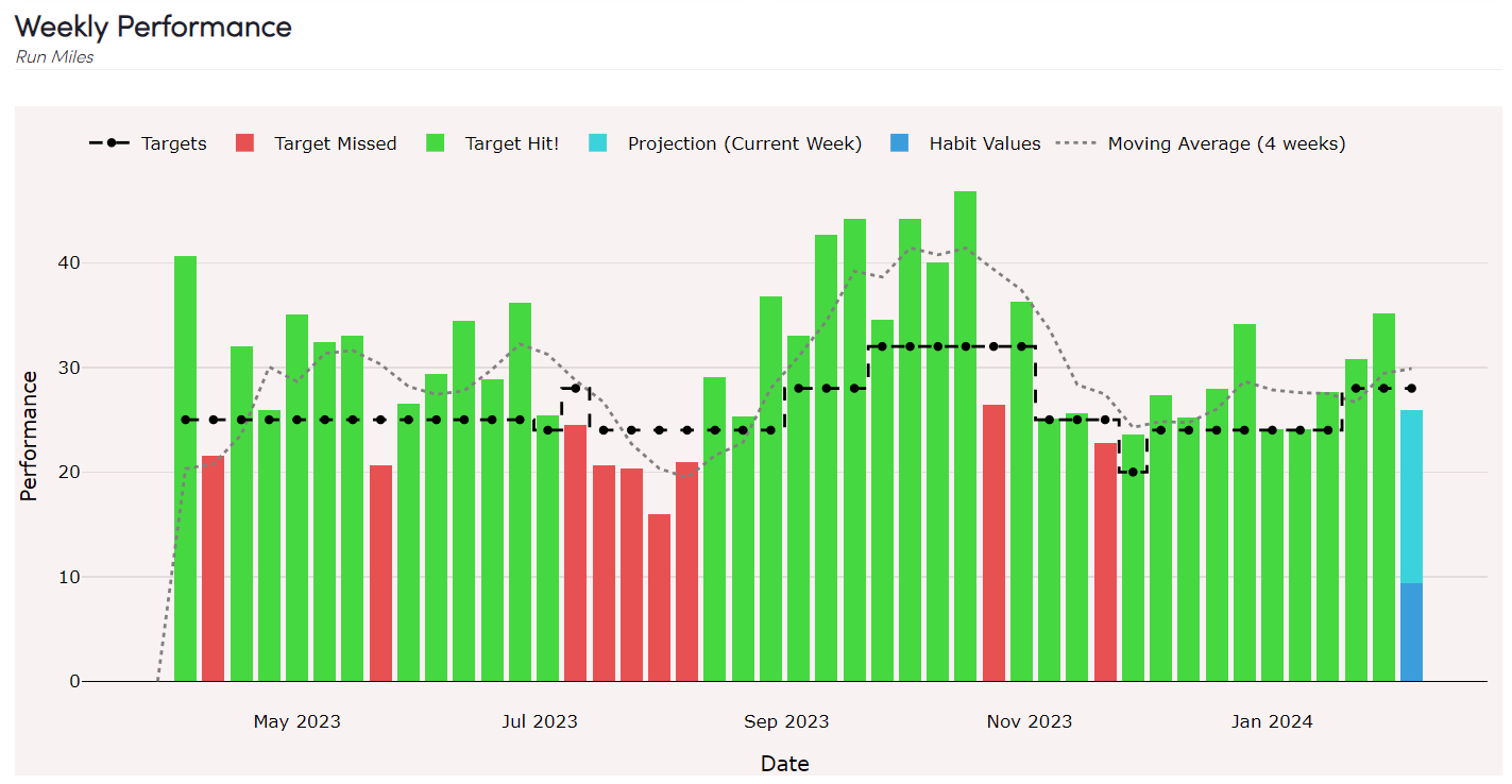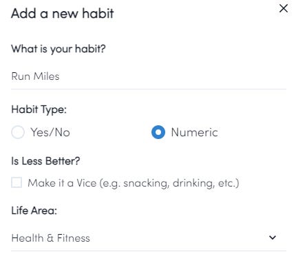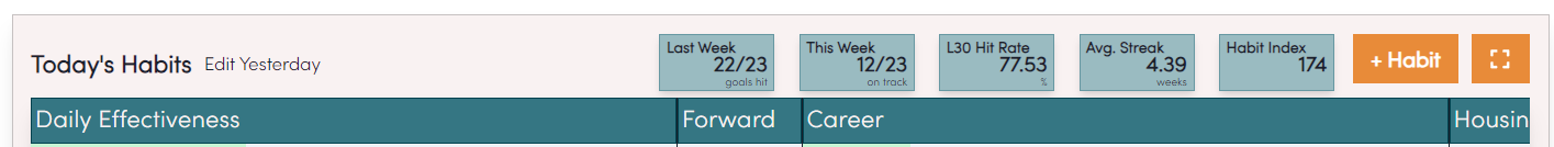 Habits in Forward can optionally have a target set, which is a weekly goal for you to hit. This target can be adjusted over time, and each week you’ll either hit your target or miss it.