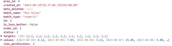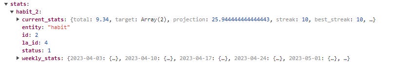 Now, as you can imagine, these numbers show up around the app in a few other places, so we had stored a habit element within our state that looks like this: